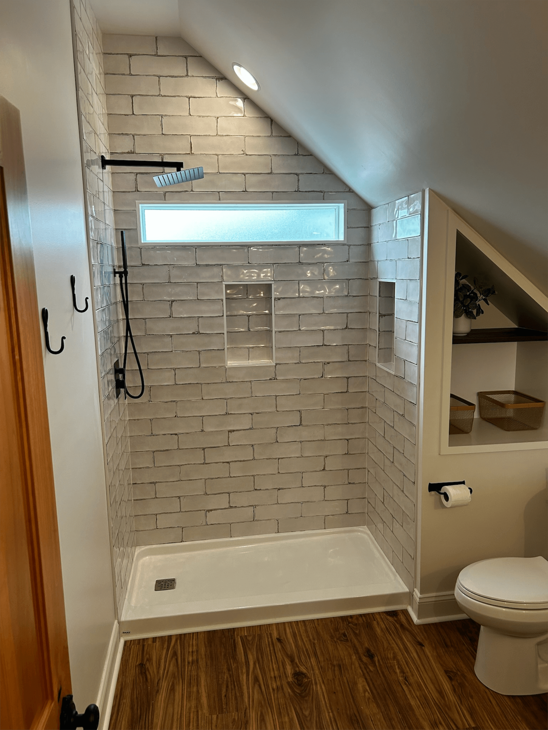 The design approach for this Shower Addition focused on flexibility, clarity, and durability. The layout is organized into distinct zones for high-traffic functionality and private relaxation, supporting daily routines while ensuring the space remains adaptable over time.